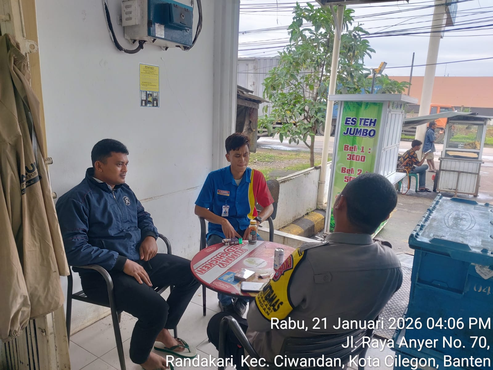 Cilegon - Bhabinkamtibmas Polsek Ciwandan Polres Cilegon Polda Banten Bangun Kemitraan Kamtibmas Dan Datangi Petugas security Meminta Agar Dapat Membantu Tugas-tugas Polri Dalam Menjaga Harkamtibmas, Kamis (22/01/2026).Kapolres Cilegon Polda Banten AKBP Dr. Martua Raja Taripar Laut Silitonga Melalui Kapolsek Ciwandan Polres Cilegon Polda Banten KOMPOL Andi Suherman Mengatakan Kerjasama antara Kanit...