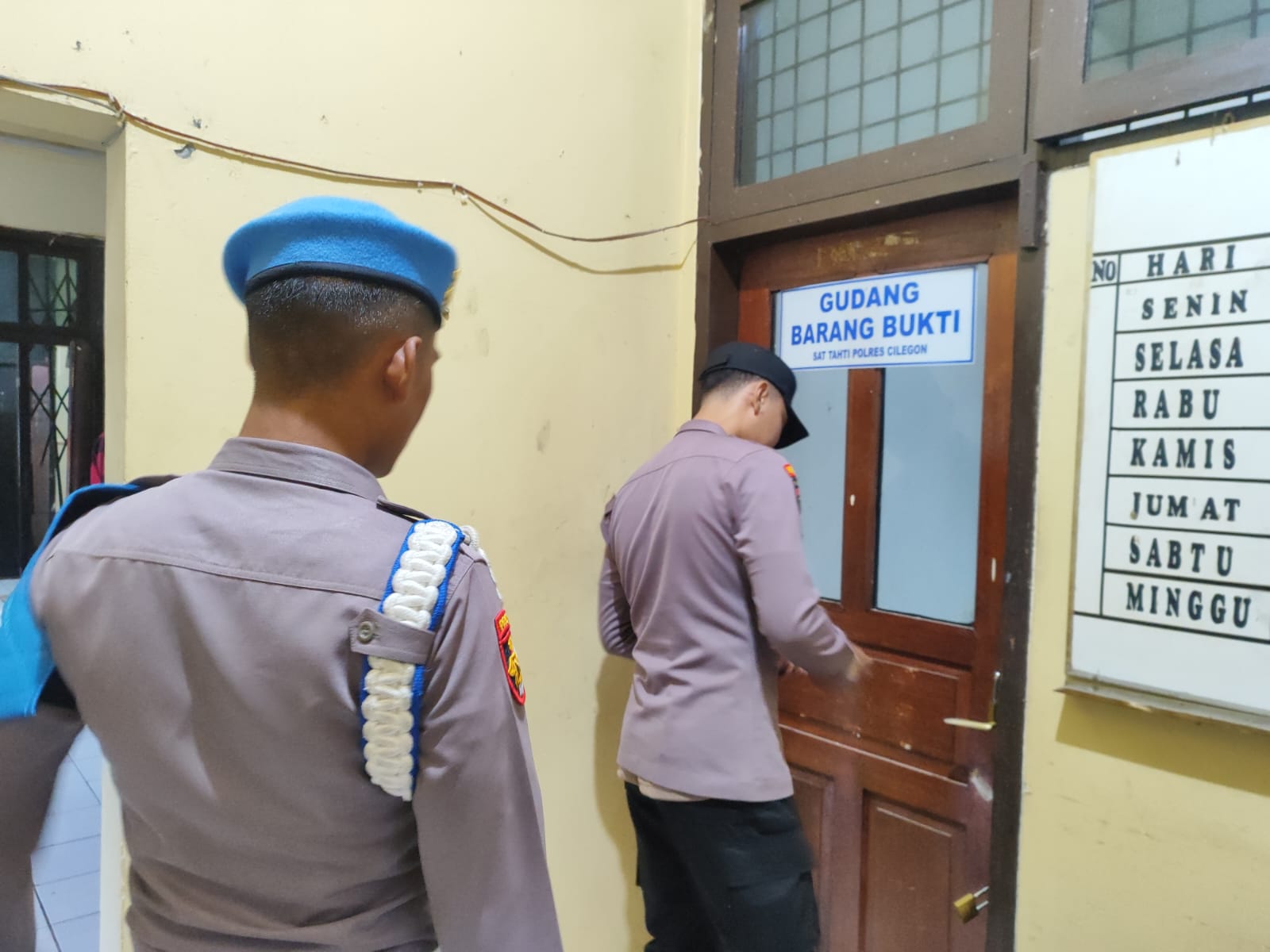 Piket Sat Tahti Melaksanakan Kegiatan Pengecekan Barang Bukti Di Sattahti Polres Cilegon