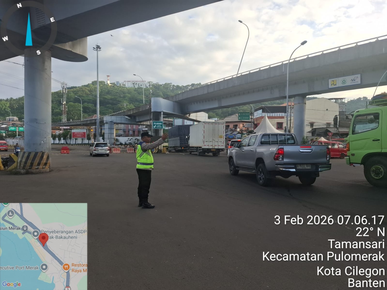 Cilegon - Dalam rangka peningkatan pelayanan prima kepada masyarakat, Kskp Merak Polres Cilegon Polda Banten melaksanakan pengaturan antrian R4 yang akan masuk ke Kapal Ferry di Pelabuhan Merak, Kamis (05/02/2026).Kapolres Cilegon Polda Banten AKBP Martua Raja Taripar Laut Silitonga melalui Kapolsek Kskp Merak AKP Gusti Almasri P menyampaikan bahwa kegiatan...