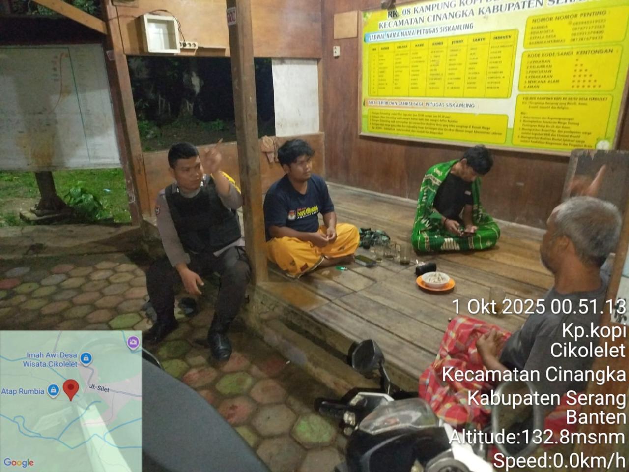 *Polres Cilegon* || Personel Bhabinkamtibmas Polsek Cinangka melaksanakan Program Commander Wish Kapolda Banten RONDA SATKAMLING menjalin komunikasi dengan Petugas Siskamling agar berperan aktif dalam menciptakan Harkamtibmas yang aman dan Kondusif, Rabu (01/10/2025).