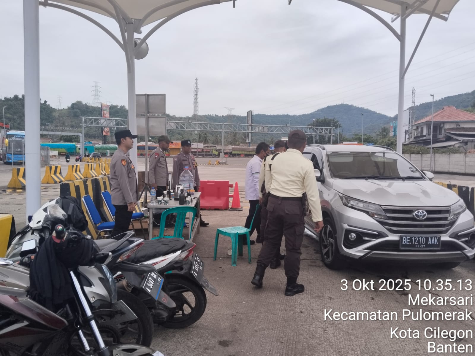 Cilegon - Personel Polsek Kskp Merak Polres Cilegon Polda Banten melaksanakan sambang dan patroli kawasan pelabuhan merak dalam rangka menjaga Harkamtibmas di Kawasan Pelabuhan Merak, Jumat (03/10/2025).