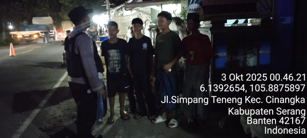 -*POLRES CILEGON*-Polda Banten. Dalam rangka Menjaga situasi kamtibmas kondusif mencegah terjadinya gangguan Kamtibmas Premanisme, Kriminalitas di wilayah Personil Piket Polsek Cinangka mencegah dan Menekan Para Pelaku kejahatan dengan Patroli Blue Light yang di Lakukan Polsek Cinangka gencar Patroli Blue Light dini hari di Wilkum Cinangka Kab Serang . Jumat (03/10/2025)
