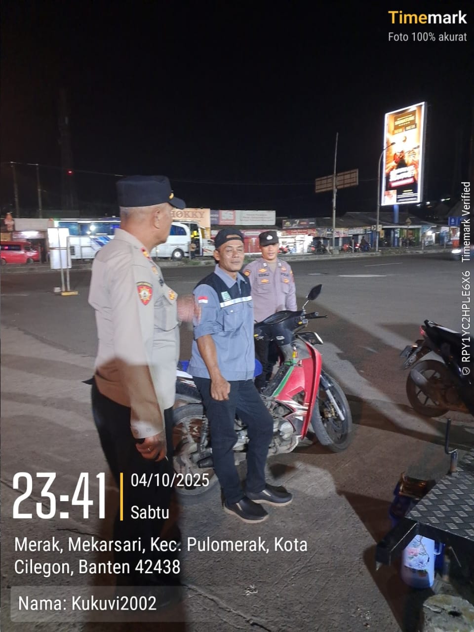 Cilegon - Personil Polsek Kskp Merak Polres Cilegon melaksanakan patroli di kawasan pelabuhan merak memberikan rasa aman dan damai, Minggu (05/10/2025)