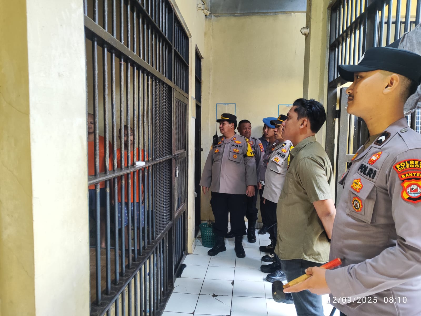 Cilegon,Personel piket Satreskrim Polres Cilegon Polda Banten beserta piket fungsi lainya melakukan pengecekan jumlah narapidana dan ruang di setiap kamar rutan di polres cilegon. Kegiatan ini bertujuan agar terus memonitor keadaan para narapidana di rutan polres cilegon dan menghindari hal-hal yang tidak diinginkan serta mengecek kekuatan setiap ruangan. Sabtu (04/10/2025).