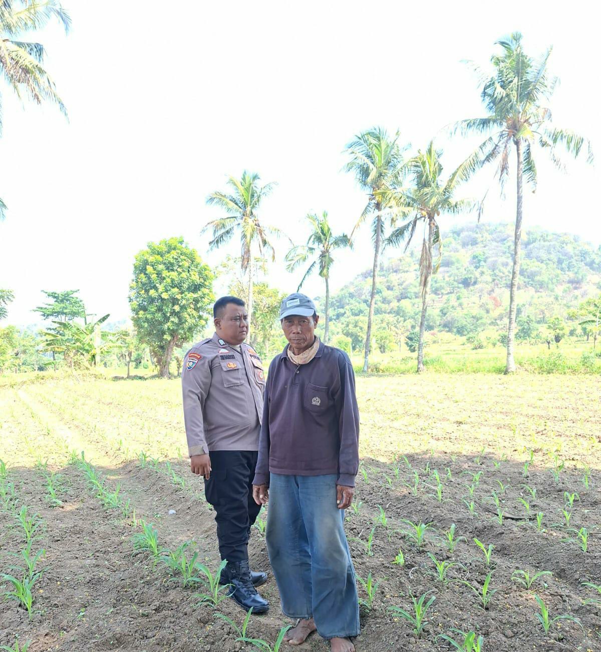 Bripka Tri Handoko Bhabinkamtibmas Polsek Bojonegara Pemantauan Kebun Jagung untuk Mendukung Ketahanan Pangan di Desa Mangkunegara