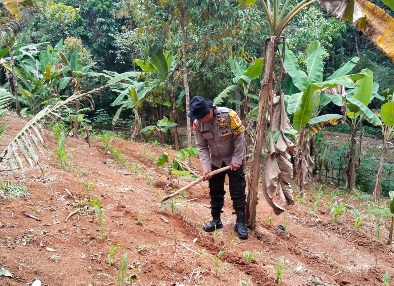 Dalam kesempatan tersebut bahwa Bhabinkamtibmas Polsek Cinangka bersama Kelompok Tani Kec. Cinangka Kab Serang Monitoring dan Pedampingan kegiatan Poktan di wilayahnya lahan yang sedang ditanami Tanaman Jagung dan Palawija.