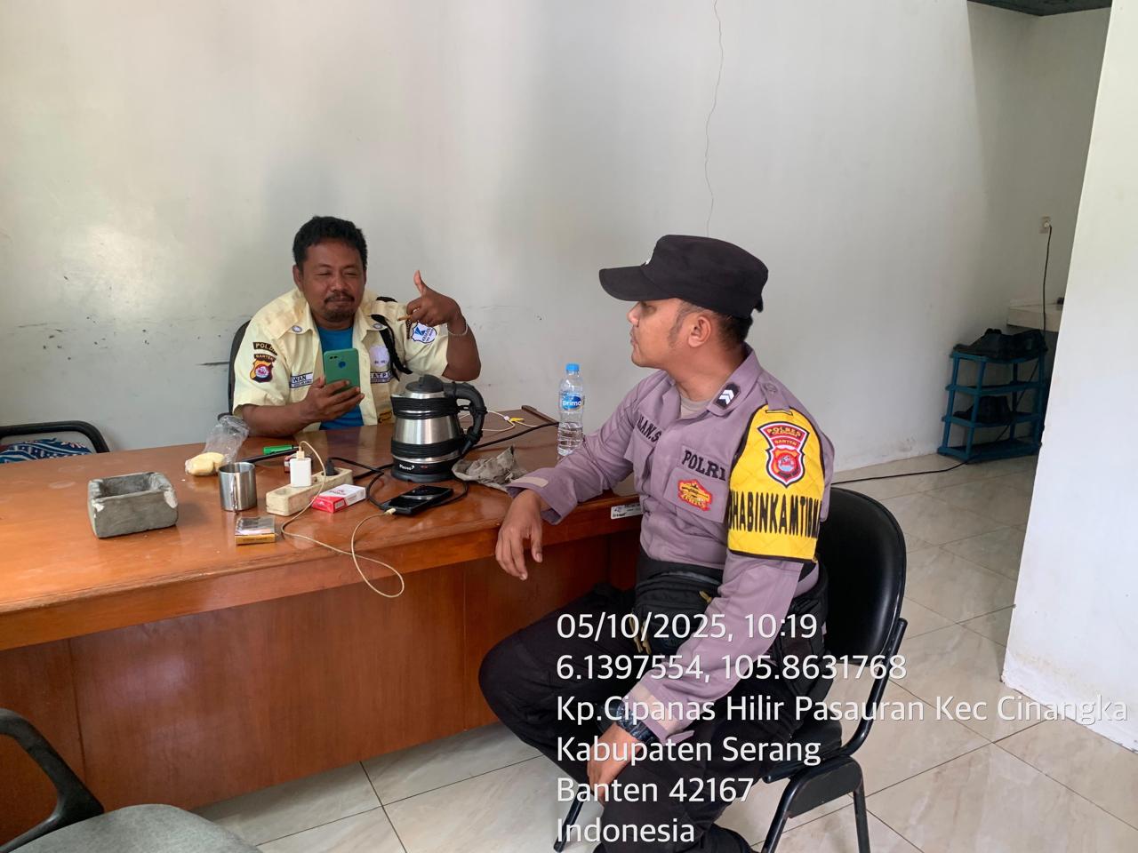 _*Cilegon*_ ~ Dalam rangka menciptakan situasi aman dan terjalinnya silaturahmi yang baik, Personil polsek Cinangka Polres Cilegon Polda Banten laksanakan Sambang Security sesuai arahan pimpinan kepada salah satu Perusahaan Desa. Sindanglaya kec. Cinangka Kab Serang. Senin (06/10/2025)