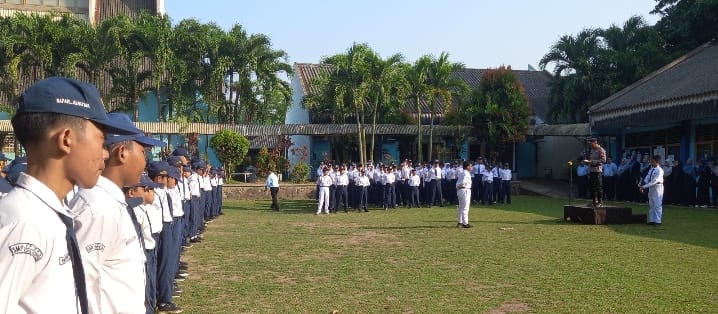 POLISI PEDULI PENDIDIKAN, KAPOLSEK PURWAKARTA POLRES CILEGON PIMPIN UPACARA PAGI DI SMP YPKS CILEGON