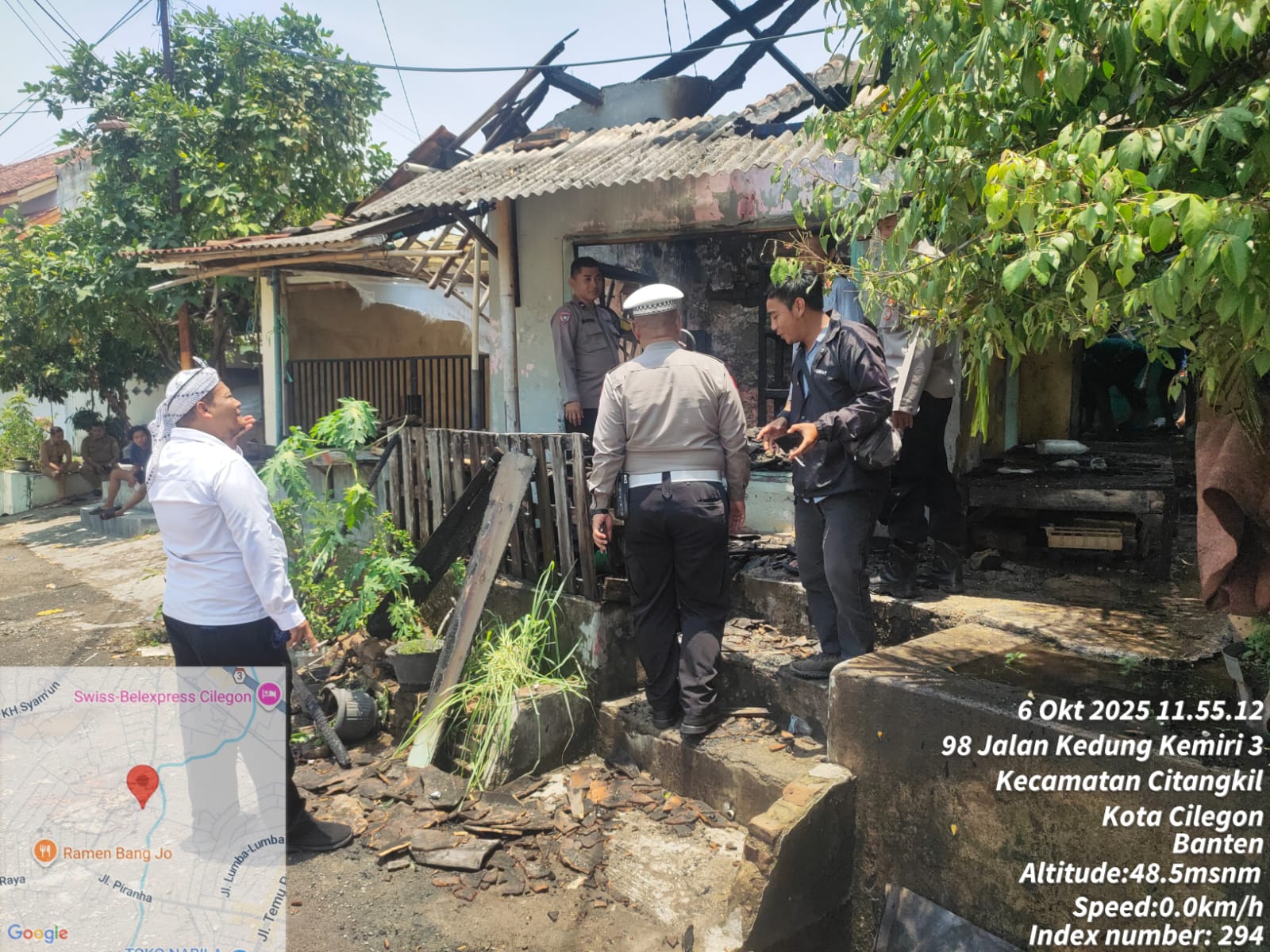 Cilegon - Polsek Ciwandan merespons cepat kebakaran warung dan dapur rumah milik Sdri. Mas'ah di Link Tegal Cabe, Kelurahan Citangkil, Kecamatan Citangkil, Kota Cilegon, pada Senin, 6 Oktober 2025. Api berhasil dipadamkan setelah tiga unit mobil pemadam kebakaran tiba di lokasi,Senin (06/10/2025).