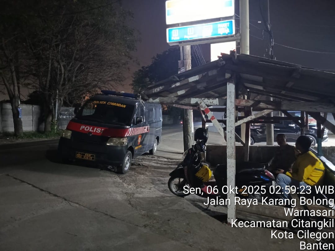 Cilegon - Polsek Ciwandan Polres Cilegon Polda Banten kembali menunjukkan komitmennya dalam menciptakan keamanan dan ketertiban masyarakat (kamtibmas) yang kondusif melalui Kegiatan Patroli Malam, Kegiatan ini dilakukan secara rutin dengan berkeliling di daerah hukum Polsek Ciwandan, Senin (06/10/2025).