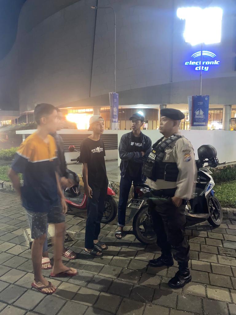 Kanit Turjawali Satsamapta Ipda Ferri dan Anggota Patroli Maung Presisi Sat Samapta Polres Cilegon menghimbau kepada masyarakat kota Cilegon untuk selalu waspada dan meningkatkan keamanan di lingkungan sekitarnya guna mengantisipasi kejadian tindak pidana khususnya 3C agar terciptanya situasi yang aman dan kondusif. (Satsamapta)