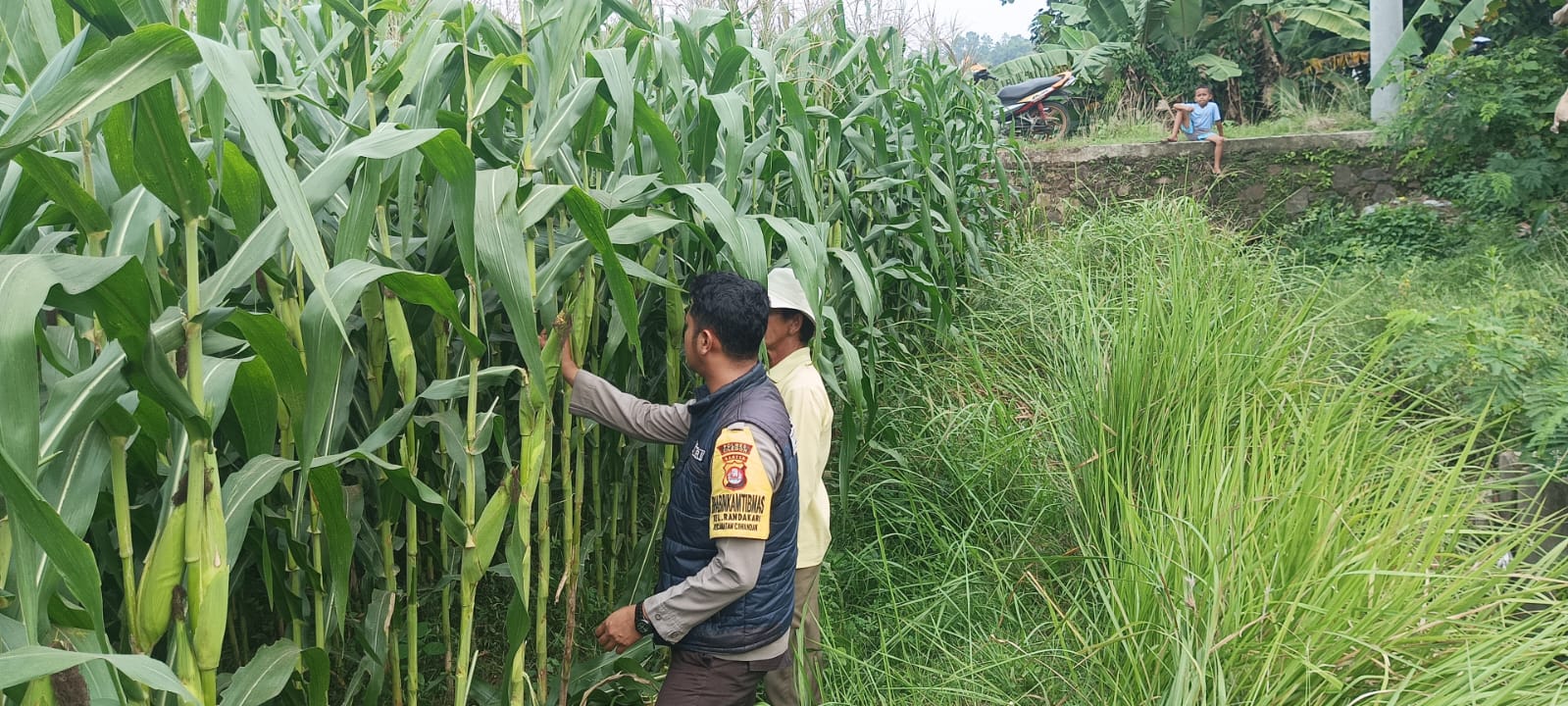 Kapolres Cilegon Polda Banten AKBP Dr. Martua Raja Taripar Laut Silitonga Melalui Kapolsek Ciwandan Polres Cilegon Polda Banten KOMPOL Andi Suherman Mengatakan bahwa Bhabinkamtibmas Polsek Ciwandan melaksanakan giat Sambang dan Silaturahmi dalam Pengecekan Tanaman Jagung Dan Lahan yang akan Ditanami Jagung Jenis Pipil Dengan lahan tanah Yang digarap oleh Petani.