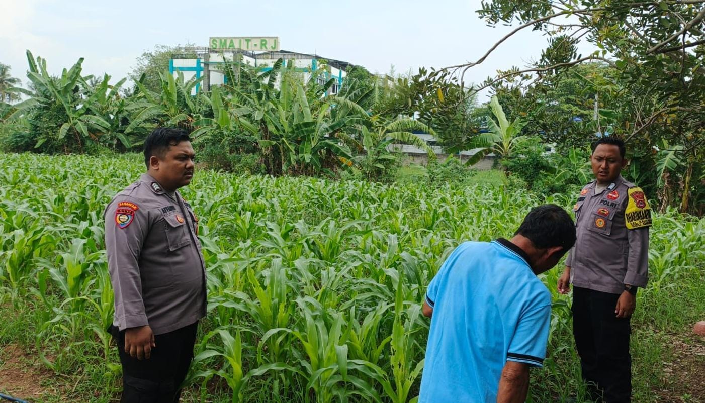 Pada kesempatan tersebut personil bhabinkamtibmas polsek Cibeber Polres Cilegon Polda Banten meninjau langsung lahan pertanian Jagung milik warga Binaan Lingkungan kelurahan Karang Asem Kec. Cibeber.