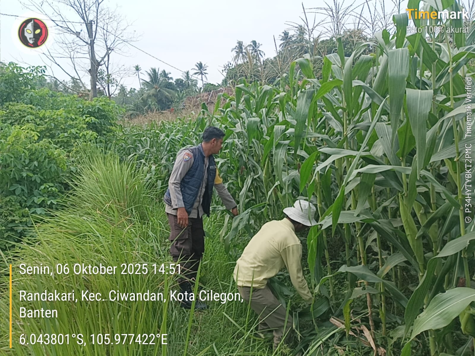 Cilegon - Dalam rangka memberikan dukungan kepada Pemerintah terkait Ketahanan pangan, Bhabinkamtibmas Ciwandan Polres Cilegon Polda Banten melaksanakan Implementasikan Program Asta Cita Presiden dengan fokus pada sektor Pertanian tanaman Jagung dilingkungan Binaan, Rabu (08/10/2025).