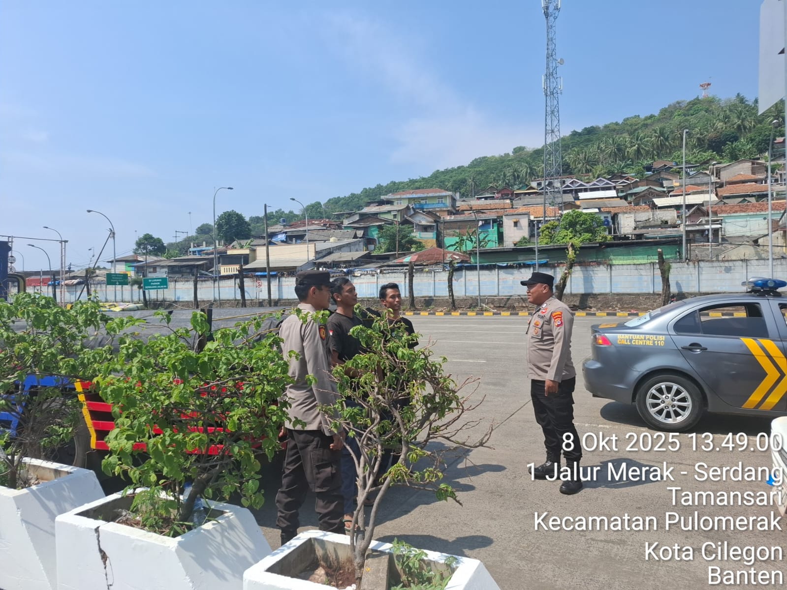 Cilegon - Personel Polsek Kskp Merak Polres Cilegon Polda Banten melaksanakan sambang dan patroli kawasan pelabuhan merak dalam rangka menjaga Harkamtibmas di Kawasan Pelabuhan Merak, Rabu (08/10/2025).