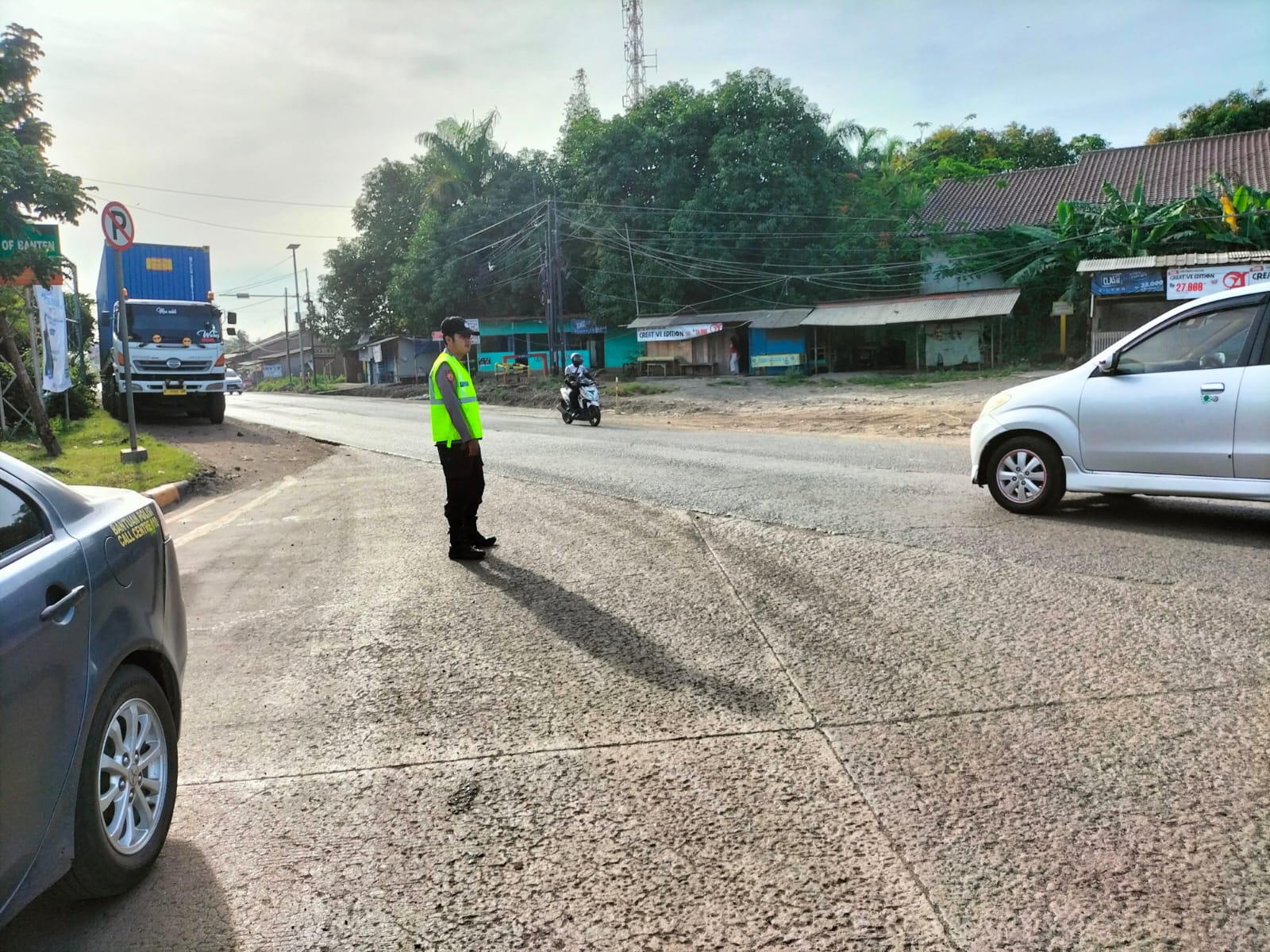 Kapolres Cilegon AKBP Martua Raja Taripar Laut Silitonga Melalui Kapolsek Kskp Banten Polres Cilegon AKP Fredo Leonard menyampaikan Laksanakan Pengamanan Sesuai plotinganya lakukan Pengaturan Supaya Arus Lalu Lintas tetap Berjalan lancar dan Pastikan tidak ada hambatan.