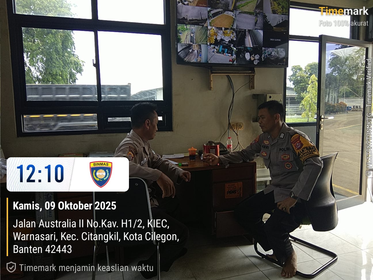 Cilegon - Demi Menjaga keamanan Daerah Hukum Polsek Ciwandan agar tetap kondusif, Personil Polsek Ciwandan Polres Cilegon Polda Banten Melakukan kegiatan sambang kamtibmas Dan Patroli Bersama Security, Kamis (09/10/2025).