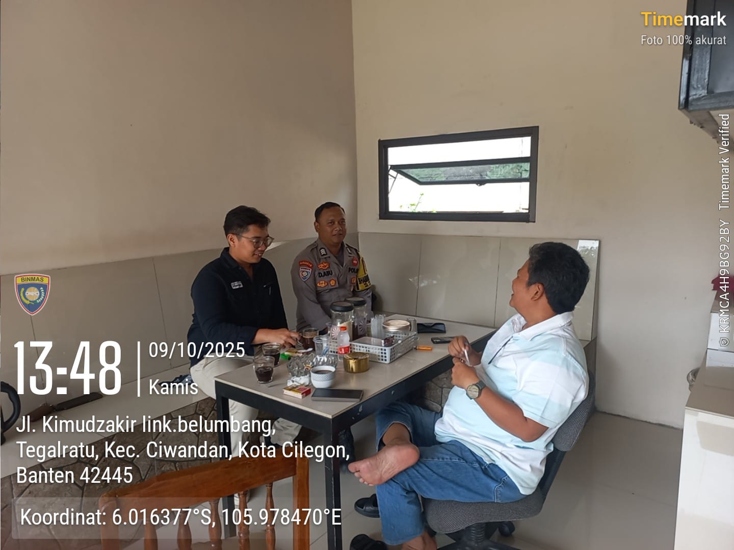 Cilegon - Kali ini Bhabinkamtibmas Polsek Ciwandan Polres Cilegon Polda Banten Bersilaturahmi Anjangsana warga binaanya Dan Tokoh Masyarakat merupakan salah satu tugas rutin yakni dengan melaksanakan Anjangsana/kunjungan kepada Tokoh masyarakat  untuk menjalin silaturahmi yang lebih erat dan menyampaikan pesan-pesan kamtibmas serta mencari informasi yang berkembang di masyarakat agar tercipta situasi kamtibmas yang aman dan kondusif,Kamis (09/10/2025).