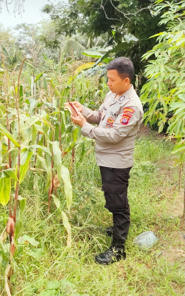 DUKUNG KETAHANAN PANGAN NASIONAL, BHABINKAMTIBMAS KEL. KOTABUMI MONITORING LAHAN JAGUNG