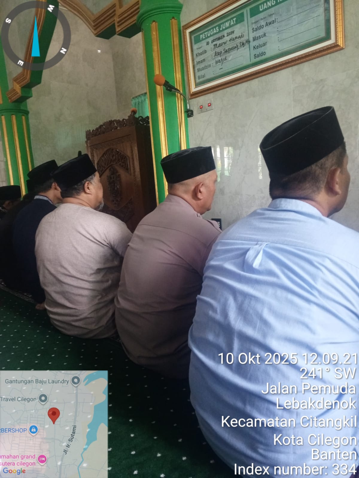Cilegon - Dalam Rangka Implementasi Program Kapolda Banten Yaitu Sholat Jum’at Keliling Dan Berjama’ah Serta Memakmurkan Masjid, Bhabinkamtibmas Polsek Ciwandan Polres Cilegon Polda Banten Sholat Berjama’ah dan Bersilaturahmi Bersama masyarakat sebagai upaya meningkatkan Ukhuwah Islamiyah dalam menjalin silaturahmi dan membangun komunikasi yang baik,Jum’at (09/19/2025).
