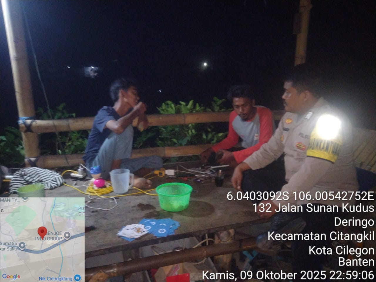 Cilegon - Upaya mengantisipasi aksi kejahatan pada daerah binaan dan memberikan rasa aman dan nyaman kepada warga binaan, Bhabinkamtibmas Polsek Ciwandan Polres Cilegon Polda Banten sambangi warga pada malam hari, Jum’at (10/10/2025).