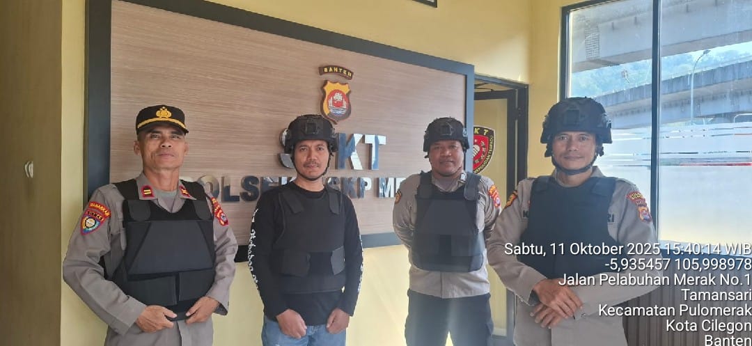 Cilegon - Personel piket jaga Polsek Kskp Merak Polres Cilgon Polda Banten melaksanakan siaga 1 Polsek pelaksanaan Sispam Mako oleh piket siaga dipimpin oleh Kspk Polsek Kskp Merak Polres Cilegon Polda Banten, Sabtu (11/10/2025).