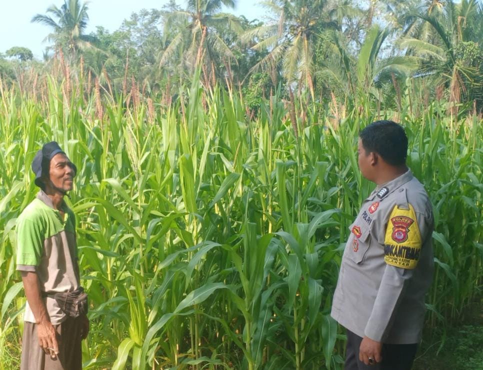Monitoring ini dilakukan terhadap tanaman jagung yang telah memasuki usia tanam 55 hari. Selain melihat perkembangan tanaman, Bhabinkamtibmas juga melakukan dialog dengan petani untuk mengetahui kendala yang dihadapi serta memberikan motivasi dalam meningkatkan hasil pertanian.