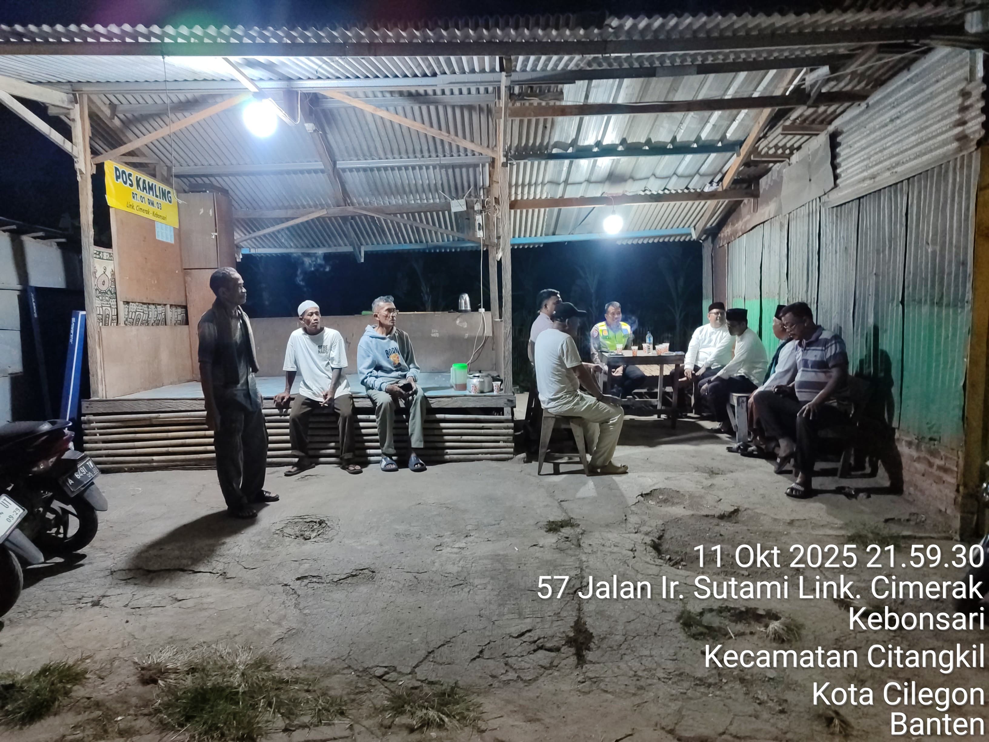 Kanit Lantas Ciwandan Bersama Bhabinkamtibmas Polsek Ciwandan Patroli Pos Ronda Siskamling.