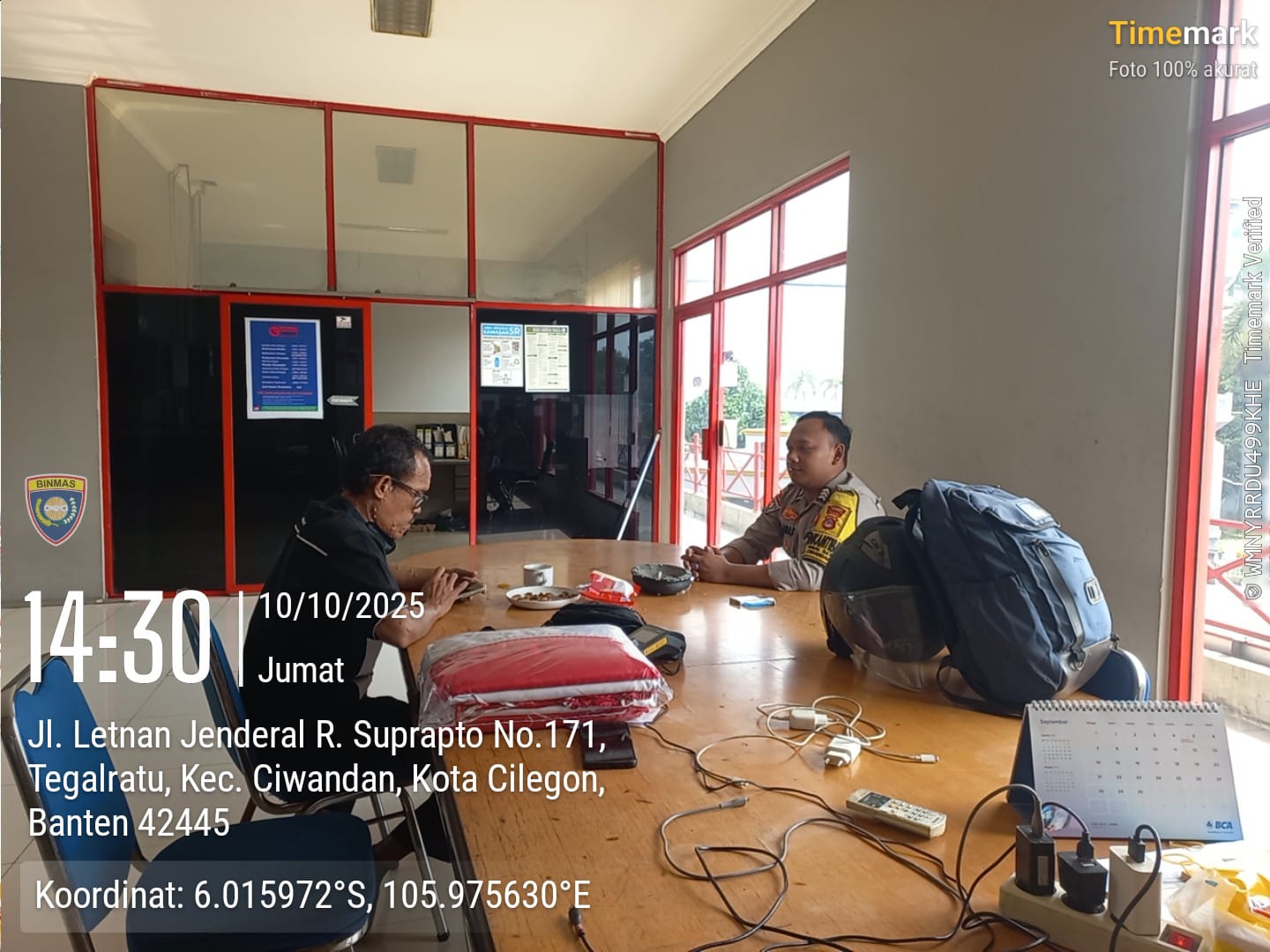 Cilegon – Guna Memastikan Situasi Yang kondusif,Kanit Binmas Beserta Bhabinkamtibmas Polsek Ciwandan Polres Cilegon Polda Banten Sambangi SPBU 34.424.03. Cigading kelurahan Tegalratu Kecamatan Ciwandan Kota Cilegon ,Sabtu (11/10/2025).