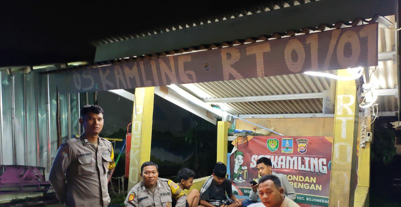 Cilegon ~ Dalam upaya menjaga situasi kamtibmas tetap kondusif, Bhabinkamtibmas Polsek Bojonegara Polres Cilegon Polda Banten,  Bripka Banbang dan Bripka Ghery melaksanakan kegiatan kontrol dan pemantauan ronda malam,di sejumlah pos ronda warga yang berada di wilayah binaannya, Minggu (12/10/2025).