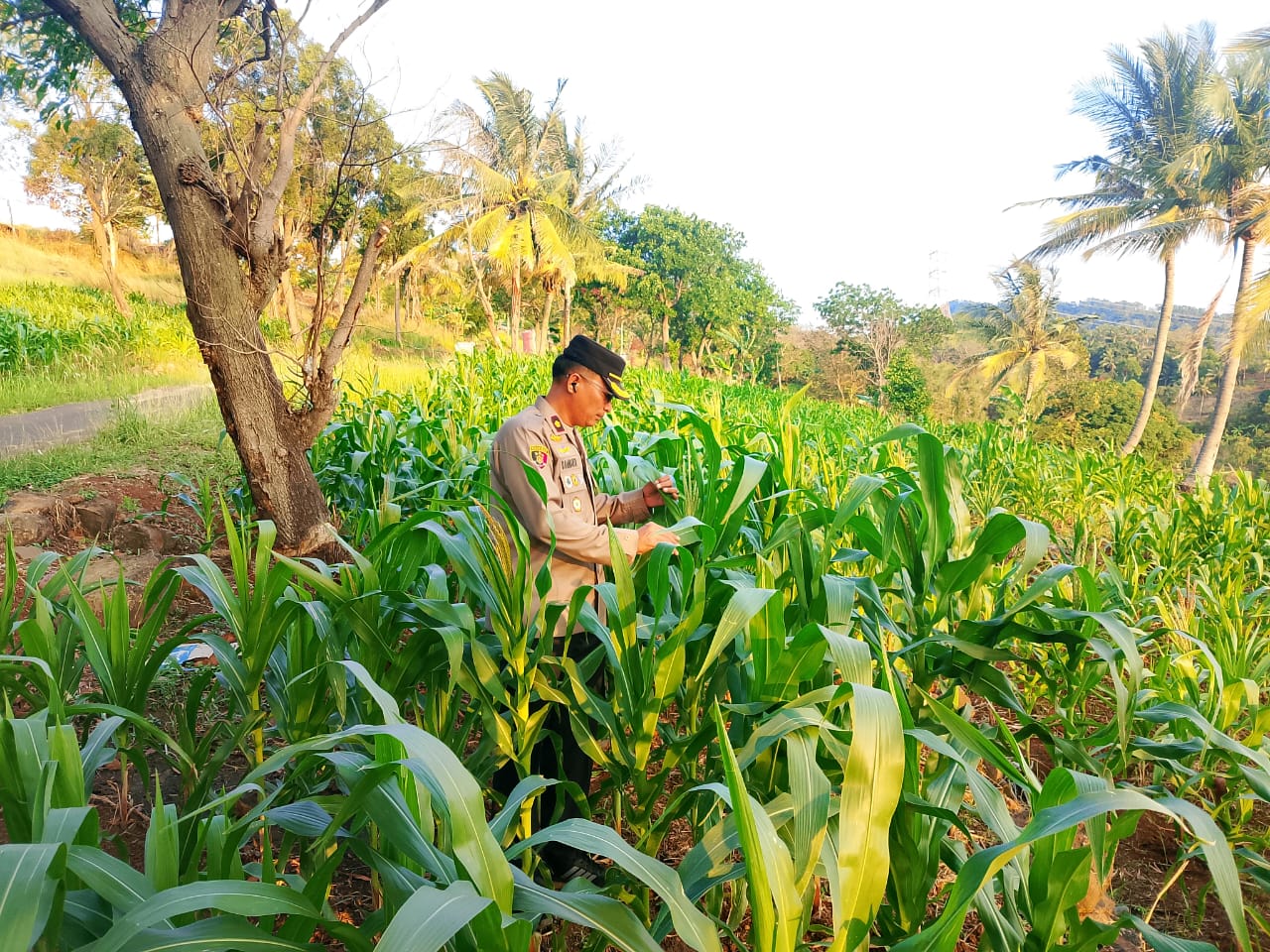 Kontrol pertumbuhan tanaman jagung, bhabinkamtibmas Polsek Pulomerak gandeng Poktan lebakgede