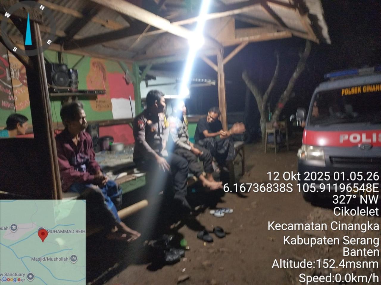 *Polres Cilegon* || Personel Bhabinkamtibmas Polsek Cinangka melaksanakan Program Komandan Wish Kapolda Banten RONDA SATKAMLING menyampaikan komunikasi dengan Petugas Siskamling agar berperan aktif dalam menciptakan Harkamtibmas yang aman dan Kondusif, Senin (13/10/2025).