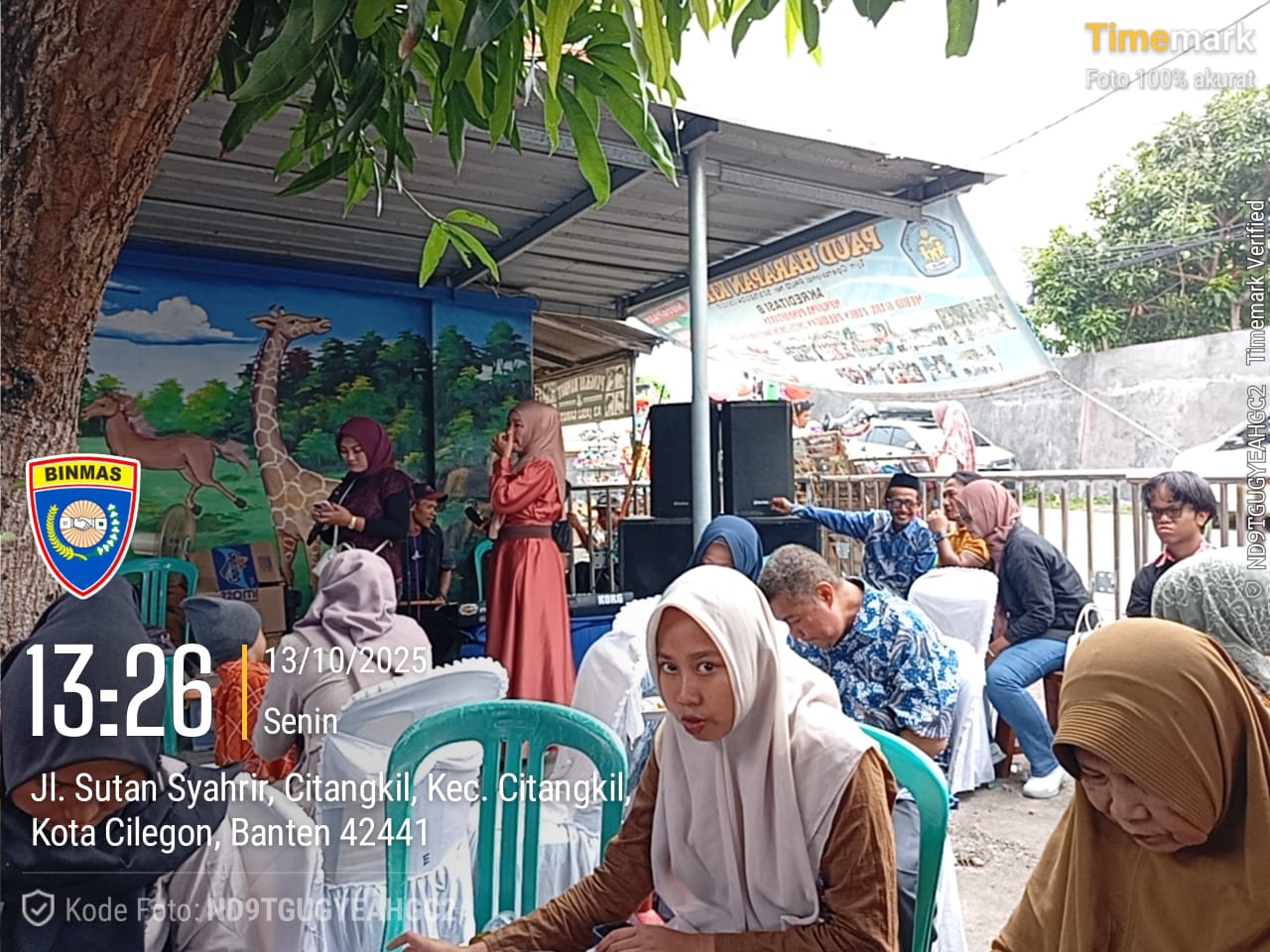 Cilegon - Bhabinkamtibmas Polsek Ciwandan Polres Cilegon Polda Banten melaksanakan Kegiatan Kondangan/Undangan ini bertujuan untuk memastikan acara berlangsung dengan aman dan tertib, serta memberikan rasa aman kepada warga yang menghadiri resepsi pernikahan tersebut,Senin (13/10/2025).