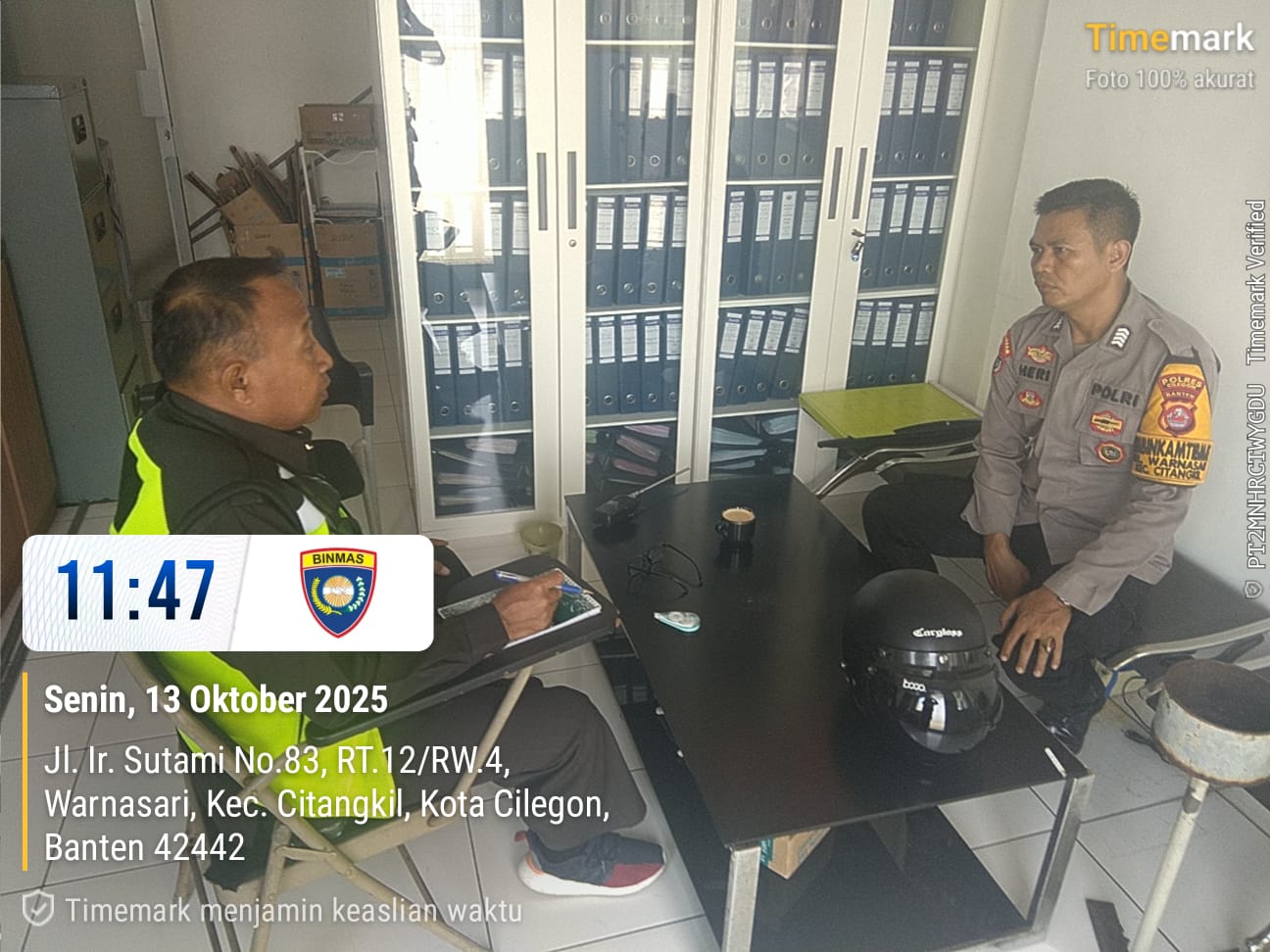 Cilegon –  Bhabinkamtibmas Polsek Ciwandan Polres Cilegon Polda Banten Laksanakan Silaturahmi Polri serta Patroli Dialogis Pembinaan Satpam/Security dan Guna Memelihara Harkamtibmas, Sebagai Petugas satuan pengamanan atau security merupakan bagian dari mitra dan kepanjang tanganan tugas Polri yang membantu melaksanakan pengamanan, Selasa (13/10/2025).
