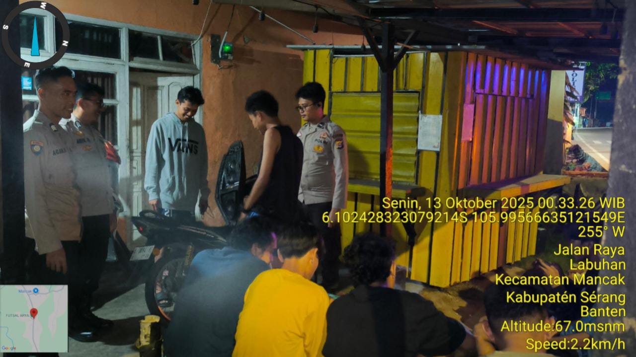 Mancak - Personel Polsek Mancak Polres Cilegon Polda Banten sebagai bentuk mendukung Program Quick Wins Presisi Polri laksanakan Patroli pada malam hari di kewilayahan guna untuk menekan 3C (Curat, Curas, Curanmor) dan gangguan kriminalitas lainnya. SENIN (13/10/2025).