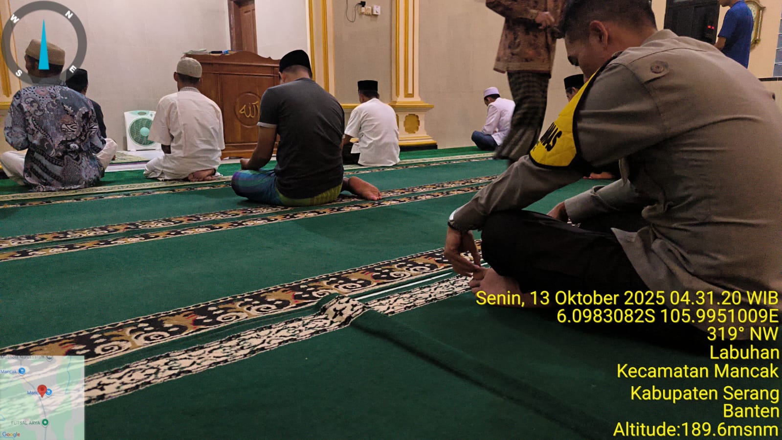 Mancak - Sebagai Pengemban Fungsi Harkamtibmas, Bhabinkamtibmas Polsek Mancak Polres Cilegon Laksanakan Program Comander Wish Kapolda Banten "SULING" Shalat Subuh Keliling menjalin kedekatan dan kemitraan dengan Masyarakat Kecamatan Mancak Kab. Serang. SENIN (13/10/2025)