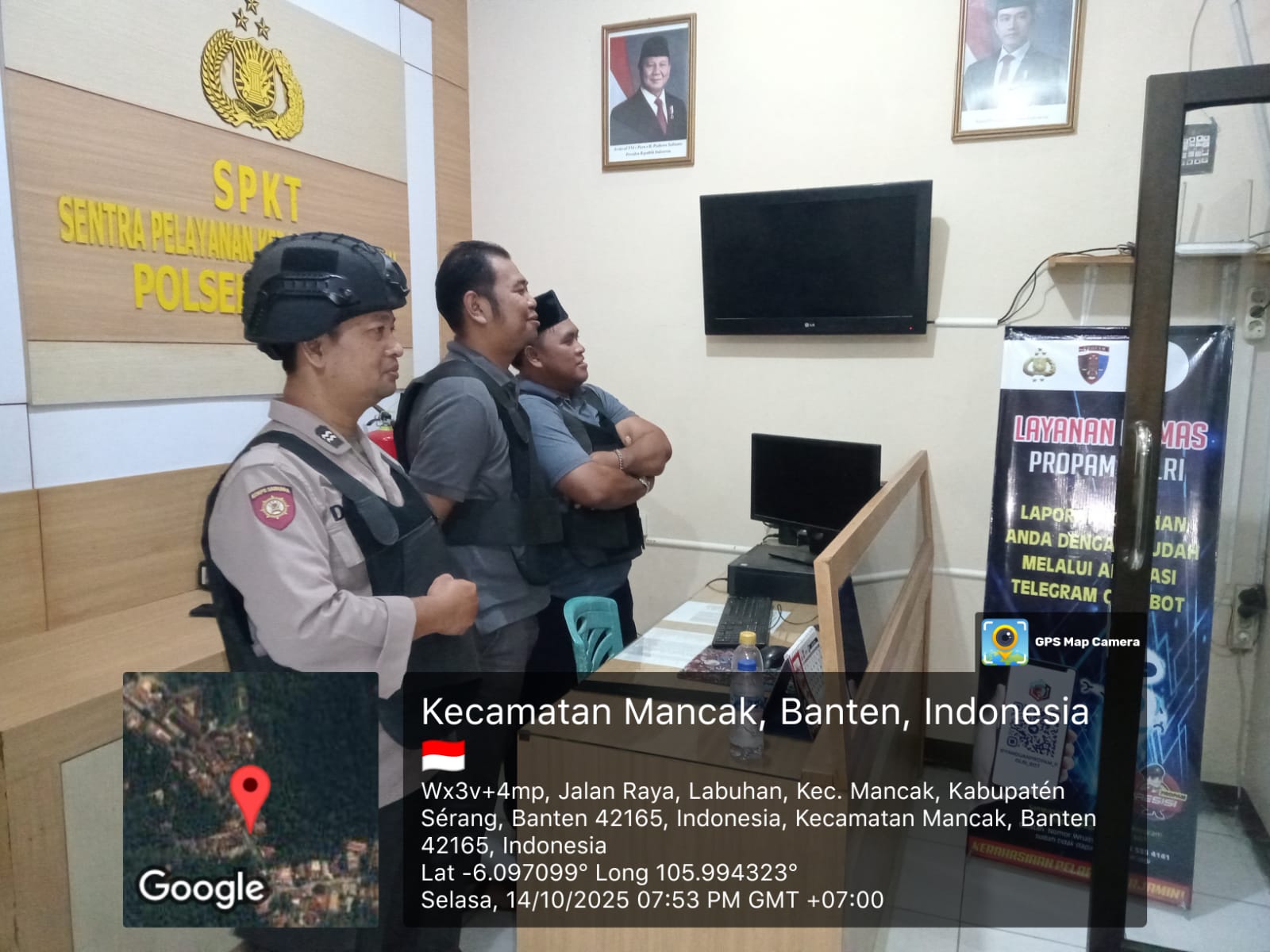 Mancak _ Sispam mako malam hari polsek Mancak guna meningkatkan sistem keamanan mako polsek Mancak. SELASA (14/10/2025).