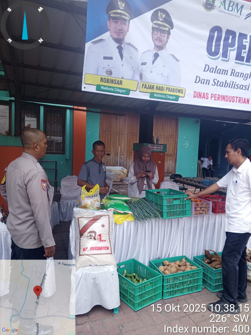 Cilegon - Operasi Pasar Murah Kali ini Bertempat di Halaman Kantor kelurahan Lebak Denok Kecamatan Citangkil Kota Cilegon,Bhabinkamtibmas Kelurahan Lebak Denok AIPTU Yudi Setiawan Melaksanakan Pengamanan di Lokasi, Rabu (15/10/2025).