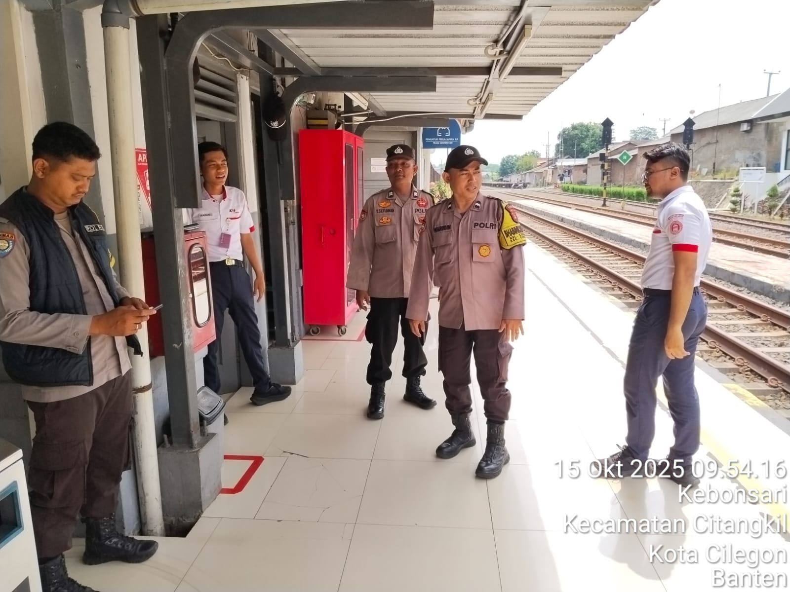 Cilegon - Personil Polsek Ciwandan Polres Cilegon Polda Banten melaksanakan giat patroli Dan dengan sambangi Petugas Stasiun Kereta Api dan penjaga pintu perlintasan kereta api,Rabu (15/10/2025).