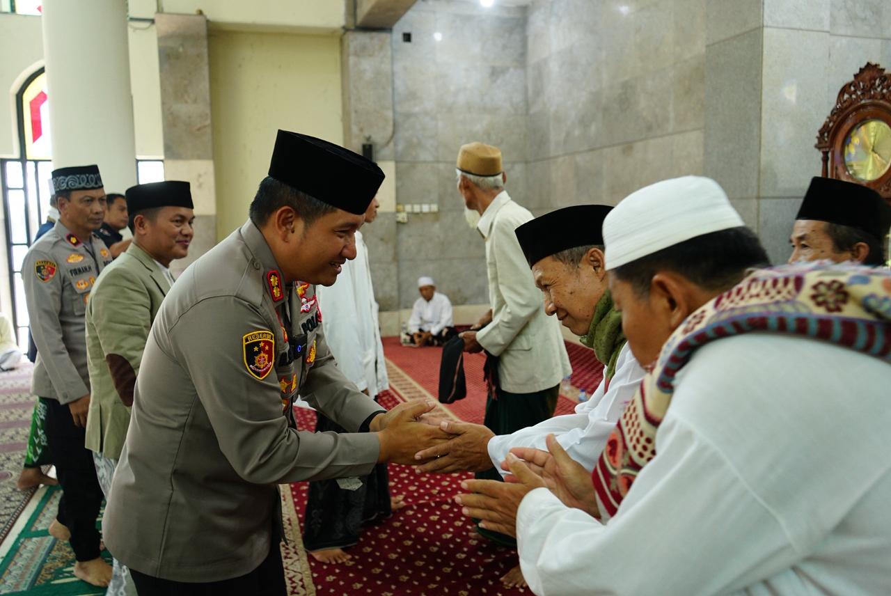 Cilegon – Dalam upaya mempererat hubungan dengan masyarakat serta memperkuat sinergitas dalam menjaga keamanan dan ketertiban, Kapolres Cilegon Polda Banten, AKBP Dr. Martua Raja Taripar Laut Silitonga, S.H., S.I.K., M.Si., melaksanakan kegiatan Silaturahmi Jum’at Keliling (Jumling) di Masjid Baitul Islah, Link. Pegantungan, Kelurahan Jombang Wetan, Kecamatan Jombang, Kota Cilegon, Jumat (17/10/2025).