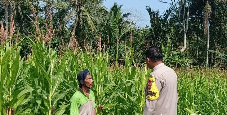 Cilegon – Dalam rangka mendukung program ketahanan pangan nasional dan swasembada pangan Bhabinkamtibmas Polsek Anyar melaksanakan kegiatan sambang dan monitoring lahan pertanian jagung di Desa Sindang Karya, Kecamatan Anyar, Kabupaten Serang. Jum'at (17/10)