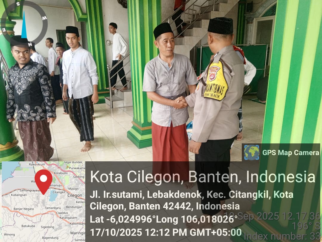 Cilegon - Bhabinkamtibmas Polsek Ciwandan Polres Cilegon Polda Banten Selesai melaksanakan Sholat Jum’at secara berjama’ah dan Sampaikan Himbauan-himbauan Kamtibmas Kepada Masyarakat Jama'ah Yang ada Dimasjid, Jum’at (17/10/2025).