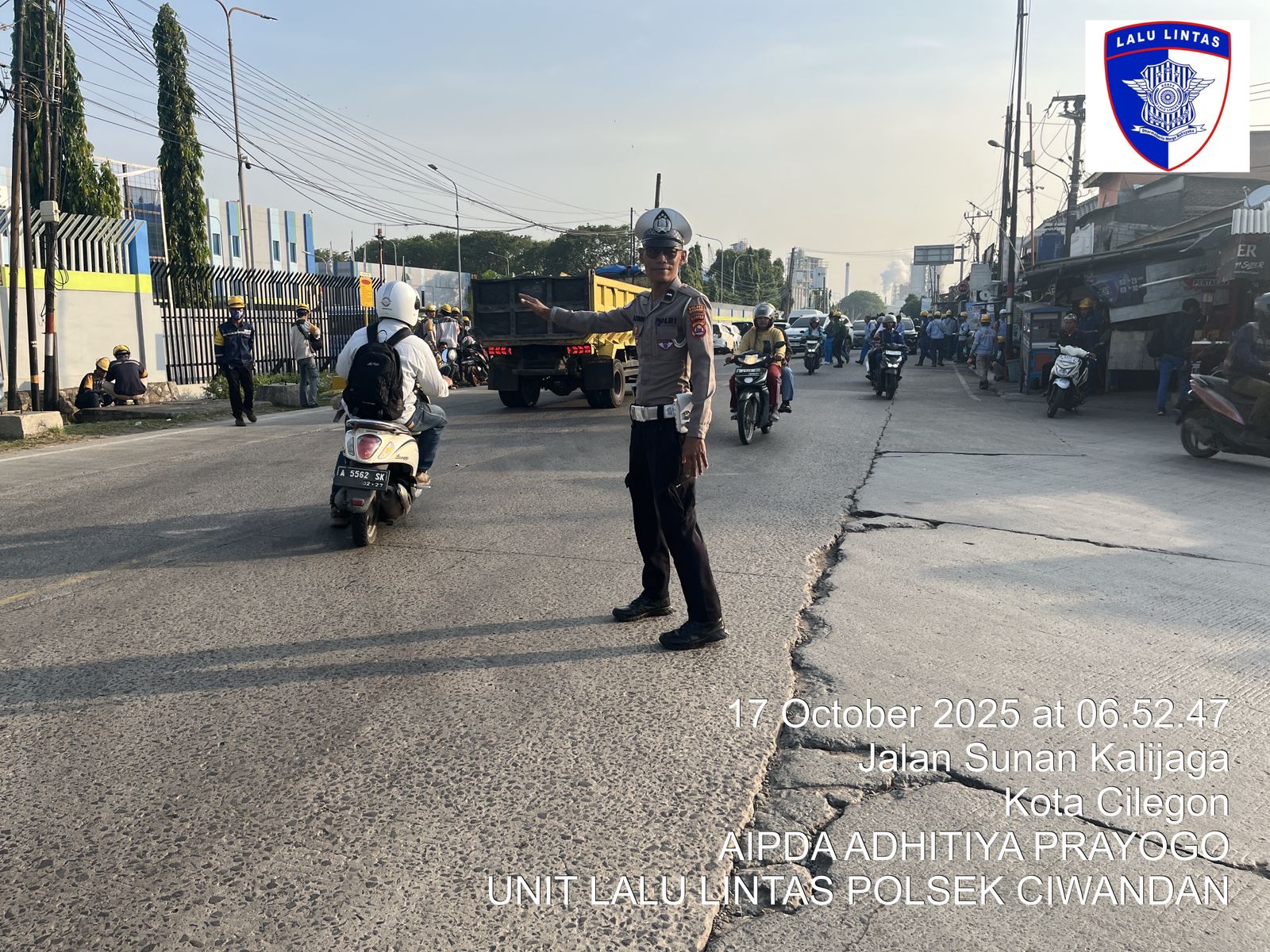 Cilegon - Personil  Polsek Ciwandan Polres Cilegon Polda Banten melaksanakan giat Strong Poin Pengaturan Lalu Lintas Disimpang Brown Kelurahan Gunung Sugih guna menciptakan ketertiban, keamanan dan Kelancaran Lalu-lintas bagi masyarakat, Jum’at (17/10/2025).
