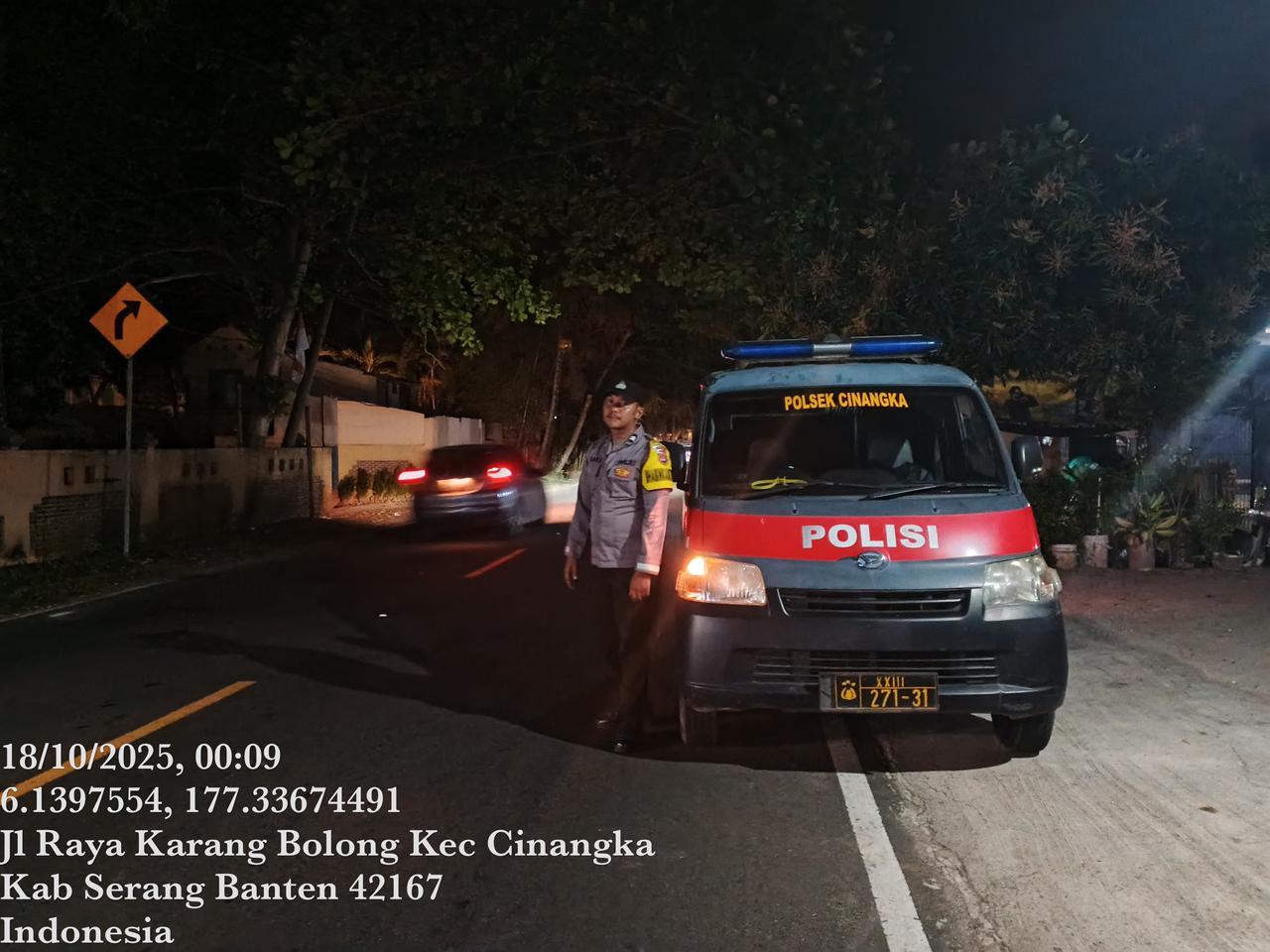 *Cilegon* – Dalam Rangka Pencegahan Kejahatan Jalanan dan Memelihara situasi keamanan dan menjaga serta memberikan rasa aman dan nyaman di masyarakat,Salah satu upaya untuk mewujudkan hal tersebut sebagaimana yang dilakukan oleh Personil Polsek Cinangka Polres Cilegon Polda Banten melaksanakan giat patroli blue light malam hari hingga menjelang pagi, Sabtu (18/10/2025).