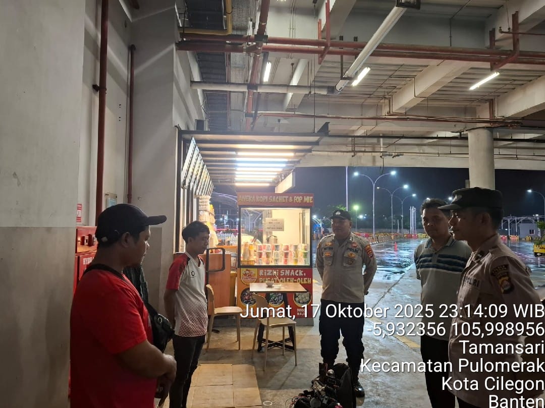 Cilegon - Personil Polsek Kskp Merak Polres Cilegon melaksanakan patroli di kawasan pelabuhan merak memberikan rasa aman dan damai, Sabtu (18/10/2025)