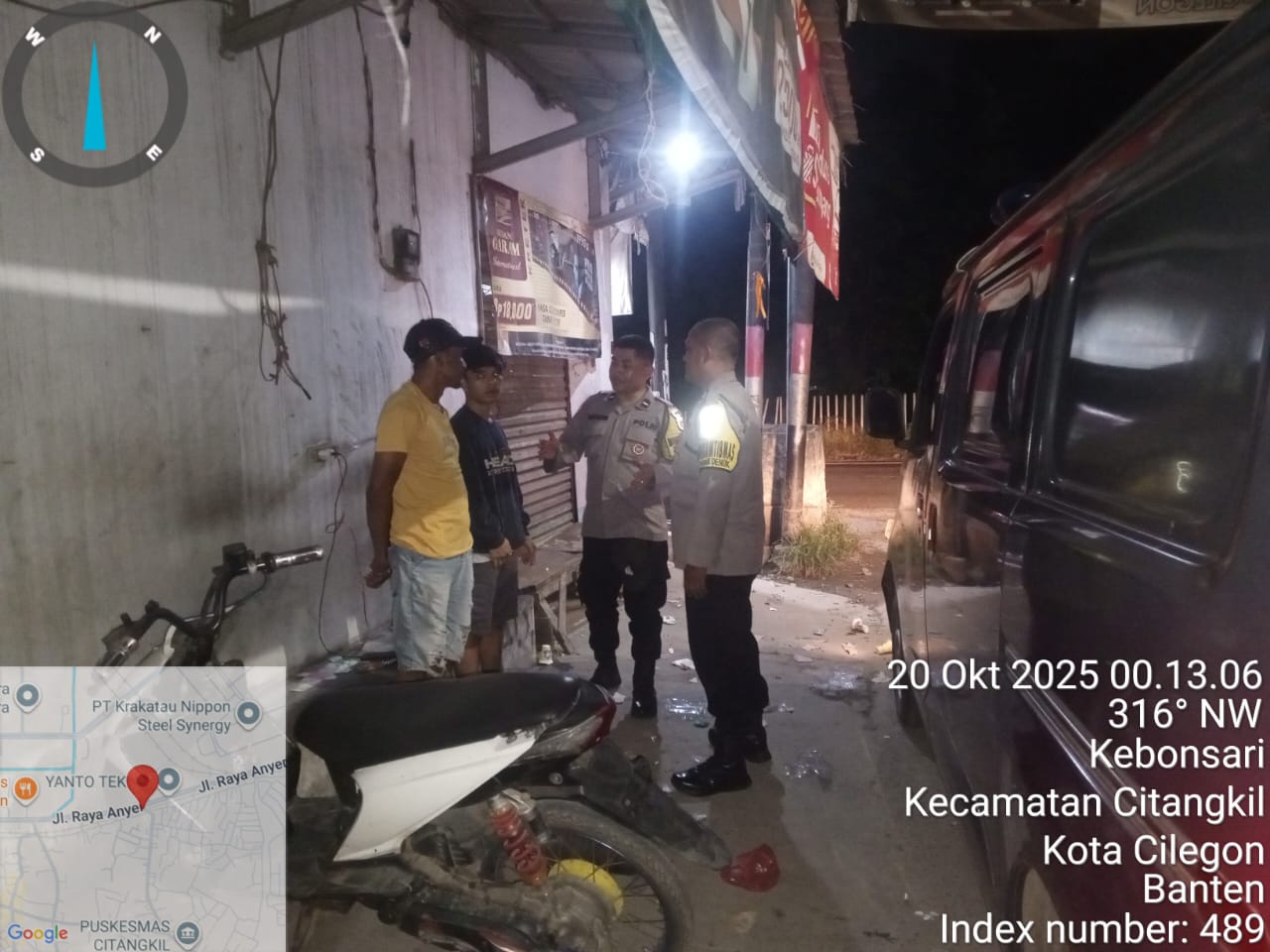 Cilegon - Personil Polsek Ciwandan Ciptakan situasi keamanan dan ketertiban di masyarakat (Kamtibmas) yang aman kondusif Dengan Melaksanakan kegiatan patroli malam guna mencegah gangguan kamtibmas dan kejahatan jalanan, Senin (20/10/2025).