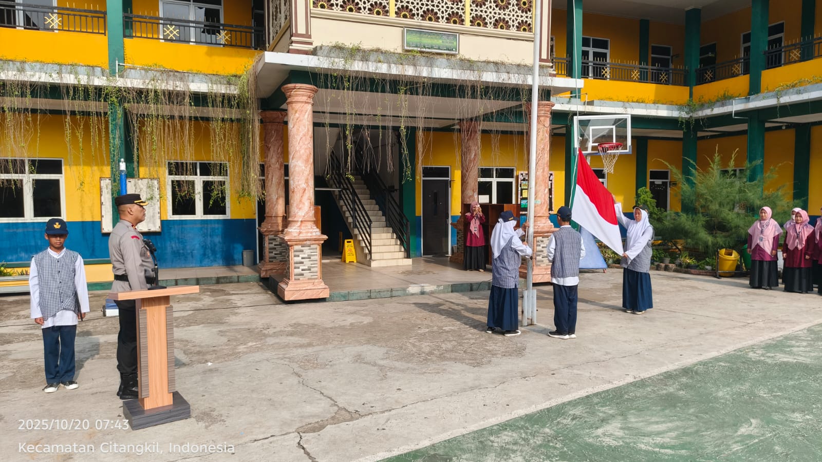 Cilegon - Melalui Kapolsek Ciwandan, Kompol And Suherman, melaksanakan program Polisi Peduli Pendidikan dengan menjadi pembina upacara di SD & SMP IT Mumtaz Al Bantani, Kelurahan Samangraya, Kecamatan Citangkil, Kota Cilegon, Senin (20/10/2025).