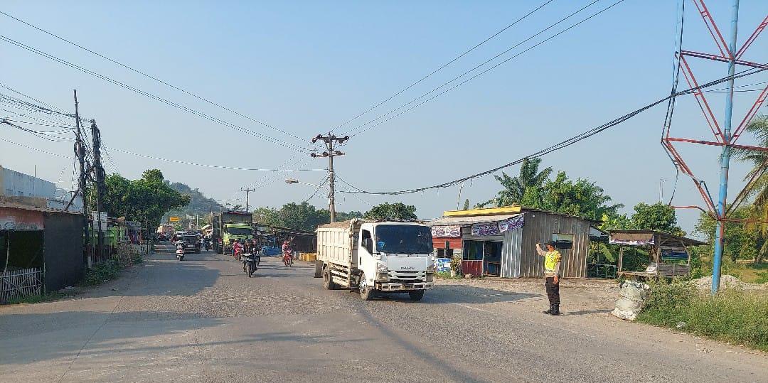 Personel Polsek Bojonegara Polres Cilegon Giat Pengaturan Lalu Lintas Di SPBU Bojonegara Lokasi Rawan Terjadinya Kemacetan Dan Kecelakaan Lalu Lintas.