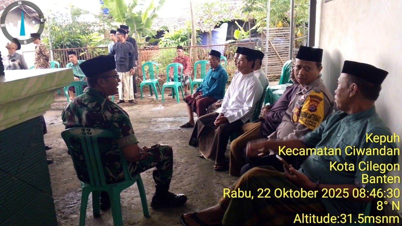 Cilegon - Salah Satu Wujud Empati Kepedulian Dari Bhabinkamtibmas Kepada warga Masyarakat di daerah binaanya, Bhabinkamtibmas Kelurahan Kepuh Polsek Ciwandan Polres Cilegon Polda Banten AIPDA Mere Erlansyah melaksanakan takziah ke salah satu warga yang meninggal dunia, Rabu (22/10/2025).