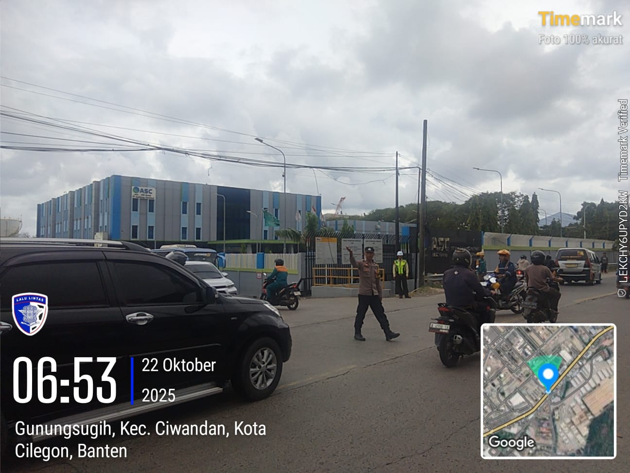 Cilegon – Berikan Pelayanan Pagi Kepada Masyarakat Personil Polsek Ciwandan Polres Cilegon Polda Banten melaksanakan pengaturan di titik kepadatan Arus Lalu-lintas Yang Ada Di daerah Hukum Polsek Ciwandan, Rabu (22/10/2025).